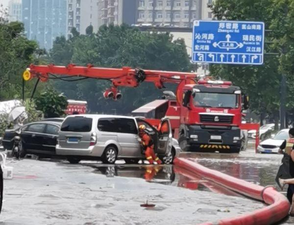 另有20名指戰員、2輛“龍吸水”大功率排澇車,在鄭州市政務服務中心地下車庫開展排澇作業,該處過水面積約3000平方,水最深處為6米,排水量約18000立方米。